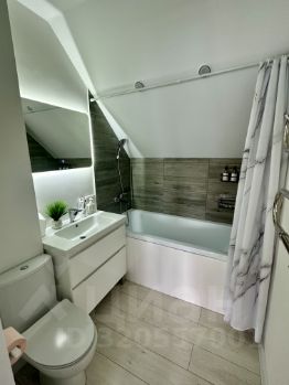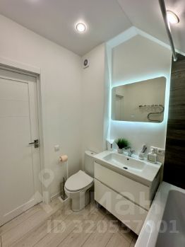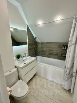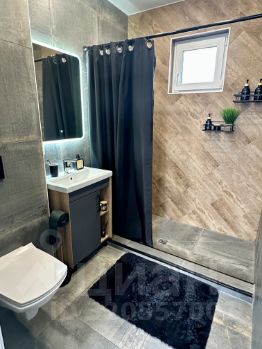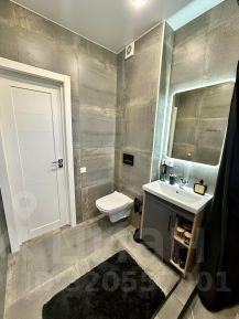 7. Санузел. Инсталляция, тумба с раковиной, зеркало с подсветкой и душ в пол. Весь санузел выложен керамогранитом.