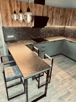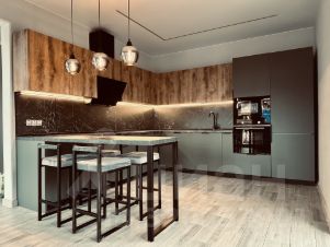 5. Большая кухня-столовая. Обеденный стол на 6 персон, барная стойка, встроенная кухня с техникой.