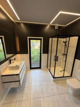 Войдя внутрь, вы попадаете в просторную кухнюгостиную с огромными панорамными окнами. Высокие потолки, уходящие на пять метров вверх, наполняют пространство светом, а камин мягко потрескивает, создавая атмосферу тепла. Здесь хочется собираться всей семьёй, встречать закаты и делиться историями. Три спальни с высокими потолками ждут своих хозяев, а гардеробная и постирочная добавляют комфорта в повседневную жизнь. Каждая деталь продумана — от сантехники премиумкласса до эксклюзивного напольного покрытия из прочного и красивого СПЦ толщиной восемь миллиметров.