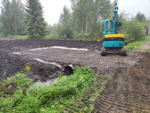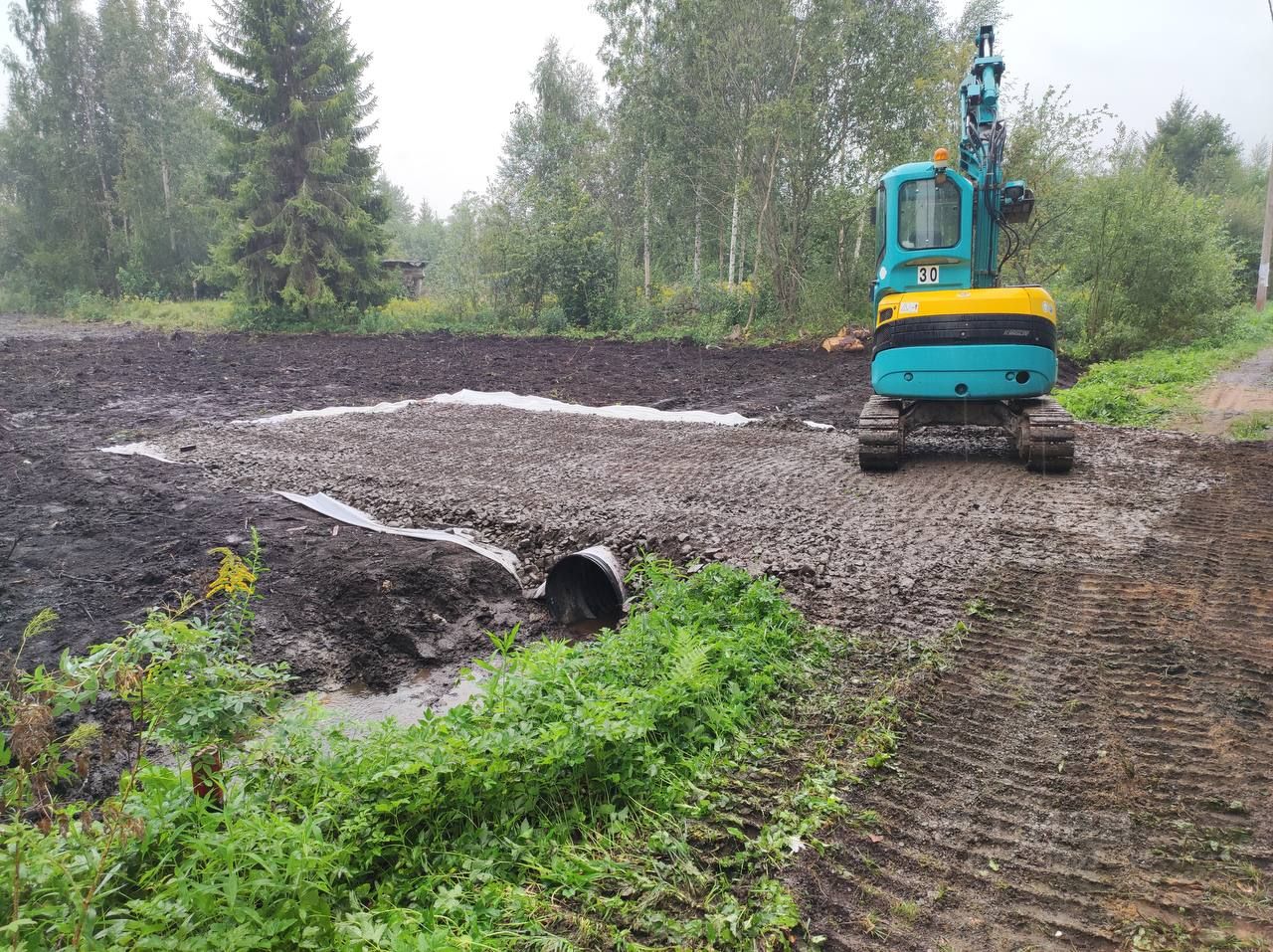 Сделано межевание под дальнейшее объединение двух участков в один (но необязательно). Участки были полностью очищены (стоял лес из осин, елей и берез), выполнено корчевание обоих участков, вычищены канавы, сделан заезд на участок с улицы Тихая (более обжитая улица).
