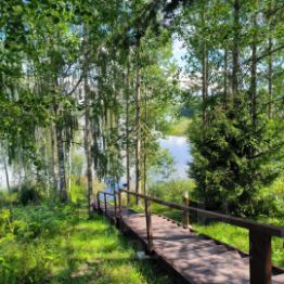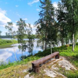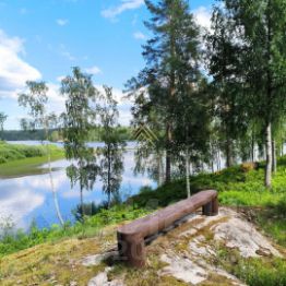 Участок уникальный. Расположен на скале, в месте, где река впадает в озеро. Разделен на 2 части, один с видом на озеро, другой с видом на реку (второй участок пока не освоен)