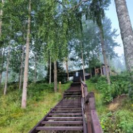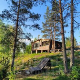На территории есть шикарная баня на дровах с открытой купелью в скале и видом на озеро, два собственных пирса, велосипеды, лодки, сапборды, рыбалка,