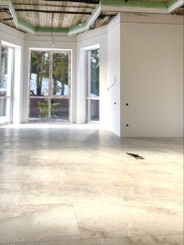 Котельная расположена на цокольном этаже. Полы первого этажа выложены керамогранитом, внутренние стены дома оштукатурены и зашпатлеваны современными материалами.