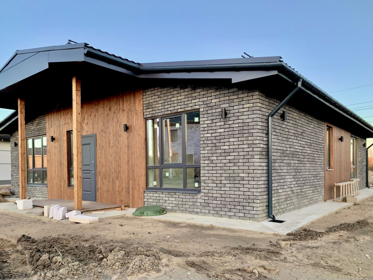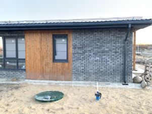 внешняя отделка фасадов завершена (декоративные фасадные материалы: штукатурка, дерево, фасадный камень).