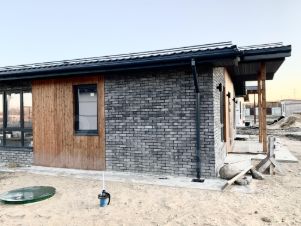 Выполнена разводка электрики по всему дому внутри дома, а снаружи подсветка фасадов.