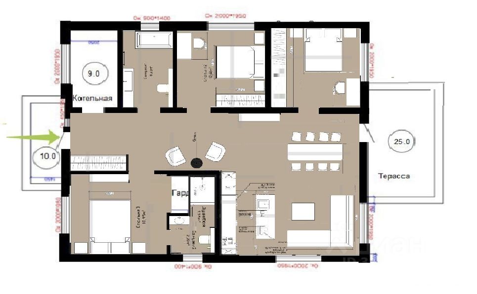 дом просторный, много света и воздуха - огромные панорамным окнам в пол