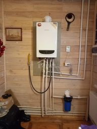 Имеет индивидуальное отопление с котлом, а также электричество, водоснабжение, газ и канализацию.