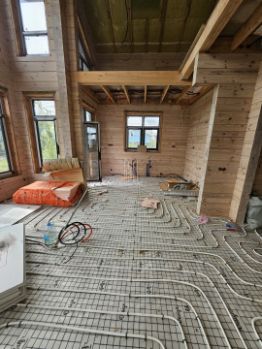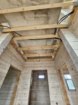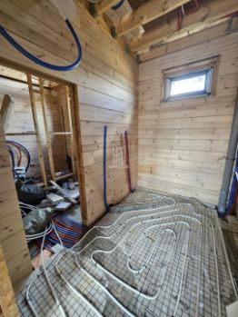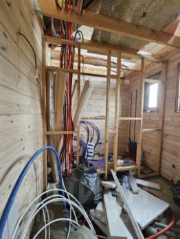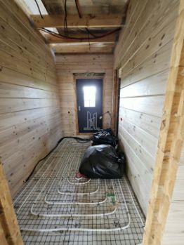 Сделана разводка эл-ва, на первом этаже проложен тёплый пол.
