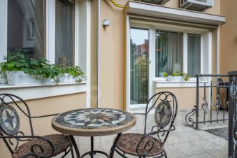 На 1 этаже гостиная со вторым светом 30,5 м (6 метровые потолки), кухня- столовая 30,8 м, кабинет и выход на уютную террасу, которая находится во внутреннем закрытом, озелененном дворе дома.