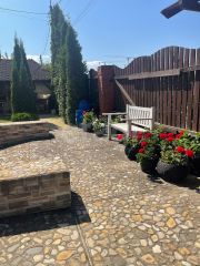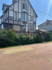 Второй дом не завершен. Одноэтажный дом с большой мансардой около 120 метров. Первый этаж около 150 метров. Дом построен и подведен под крышу. Отделка и окна отсутствуют. Второй дом можно достроить и сдавать. В этом районе дома арендуют охотно.