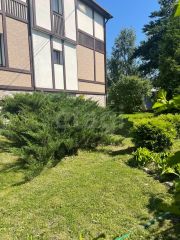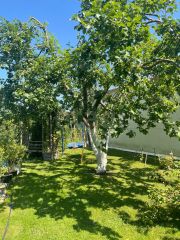 В саду множеством деревьев и кустарников, цветочных клумб. Из деревьев растет огромная липа, очень красивая большая береза, две большие симпатичные сосны и множество мелких, высотой до двух метров. Много туй. Больше ста кустов голубики, которая дает отличные урожаи. Пять взрослых яблонь, которым больше двадцати лет, и одна шестилетняя. На двух яблонях яблоки необыкновенно вкусные.