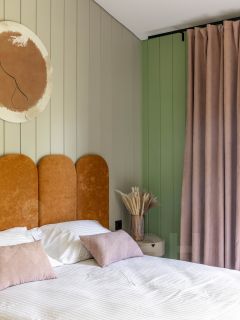 Гостевая спальня: 11м² Встроенная гардеробная, ортопедический матрас с мягким сатиновым постельным бельём, одеялами и подушками с наполнителем из лебяжьего пуха.