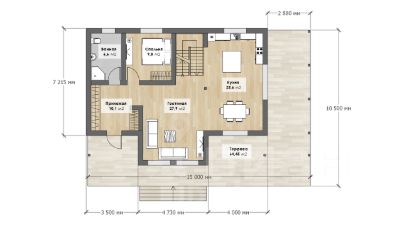 - Комбинированная внешняя отделка: штукатурка короед, камень, имитация бруса