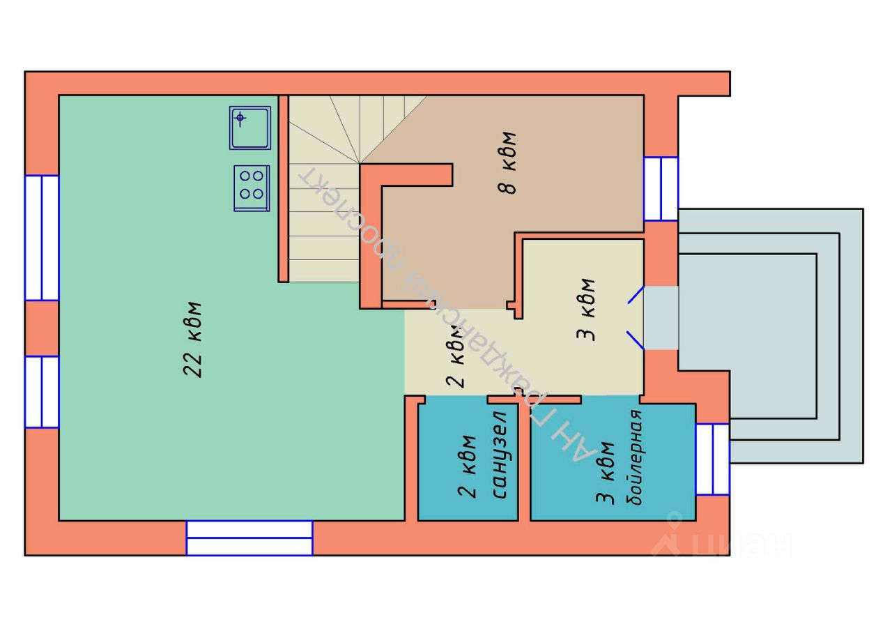 - из гостиной есть выход на участок, расположенный с обратной стороны дома