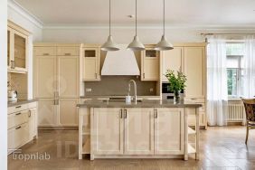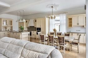 просторная кухня-гостиная с большим обеденным столом и удобным диваном;