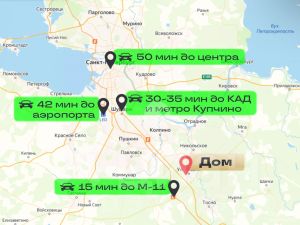 - 12 минут от ж.д. станции "Саблино" пешком. Для тех, кто предпочитает читать в комфортной электричке "Ласточке", нежели чем рулить на автомобиле. До центра города 50 минут.