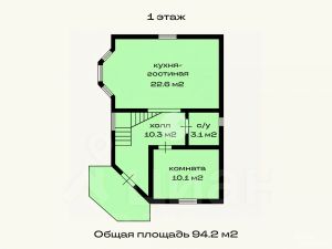 1 этаж: 1 спальня или кабинет, кухня-гостиная, санузел, прихожая.
