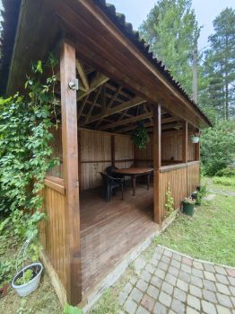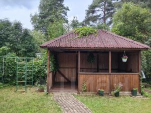 На участке выполнено благоустройство, есть беседка и детская спортивная площадка.