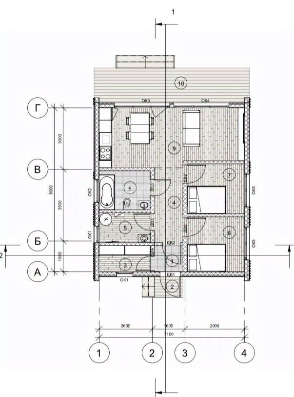 Эко-каркас: доска камерной сушки, утепление 200 мм, ветро-влаго-защита, фасад имитация бруса, кровля мягкая черепица.
