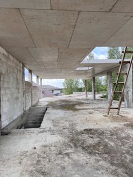 Фундамент — монолитная плита, перекрытия — бетонные, лестница — монолит
