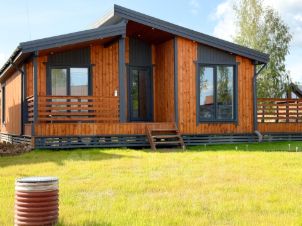 Дом стоит на надежных железобетонных сваях, что гарантирует долговечность и безопасность.
