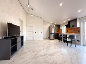 Просторная кухня-гостиная (24,09 м²) с выходом на большую террасу (24,3 м²) — идеальное место для семейных ужинов и встреч с друзьями.
