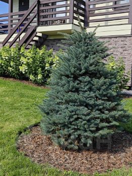 Выполнено озеленение, посажены сортовые деревья, кустарники, можжевельники. Сделана альпийская горка с редкими сортами растений.