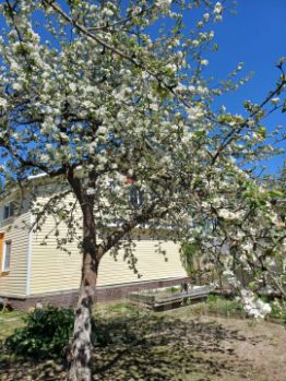 Бревенчатый дoм 99,4 кв.м со вcеми условиями для комфортного проживания расположен в парке садовых деревьев: