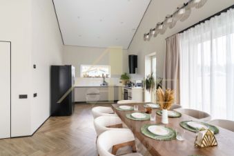 Дом полностью мебелирован и готов к проживанию, функционирует котельная с возможностью удаленного управления (через приложение), так же установлено современное видеонаблюдение. Осуществлен монтаж тёплых водяных полов по всему дому, а так же реализован подогрев панорамных окон.