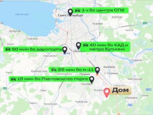 1. Отличное месторасположение! 30 км от КАДа, вся инфрастуктура в доступе. Недалеко Павловск, Пушкин с их роскошными парками и достопримечательностями. В пешей доступности отличная база отдыха и место для купания.
