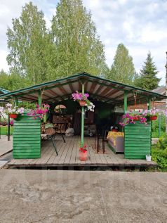 Оборудован заезд, парковка, навес для авто, беседка, хозпостройка.