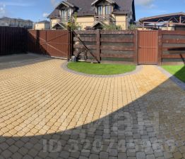 Сделана ливневка по периметру дома и выложена брусчатка для парковки, легко помещается 3 автомобиля.