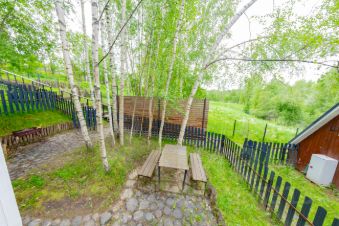• Первый этаж: кухня-гостиная с диваном (2 спальных места), спальня с двуспальной кроватью