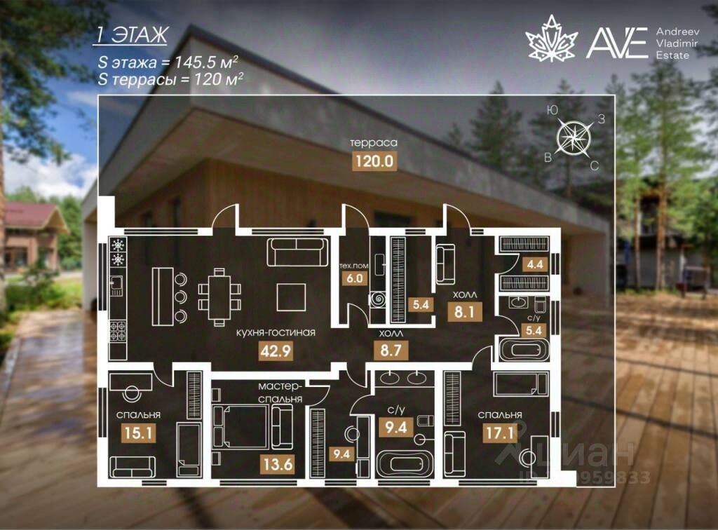 Кухня-гостинная с выходом на террасу 120 м2.