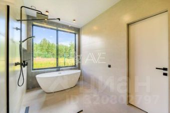 Мастер-спальня с гардеробной и с/у, в котором есть отдельностоящая ванна у большого окна, душевая зона.