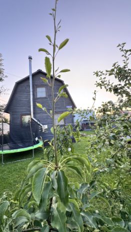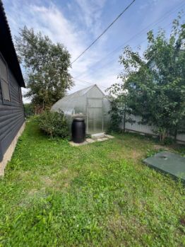Участок ровный, сухой, есть насаждения (яблони, смородина, крыжовник, малина), клубника и земляника, теплица 6х3 метра, уличный туалет и сарай для хранения.