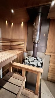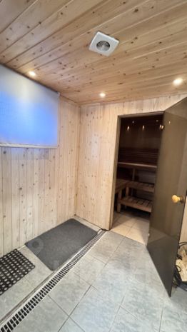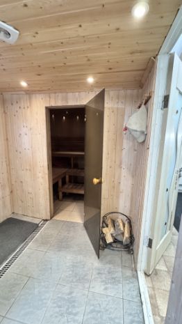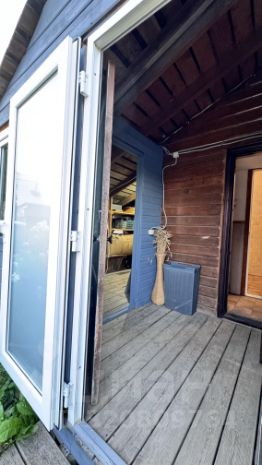 - одноэтажная баня на ленточном фундаменте из профилированного бруса с встроенной кухней, также зоной отдыха и верандой;