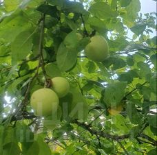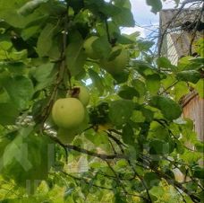 Плодовые насаждения: 3 яблони, 2 сливы, вишня, кусты чёрной смородины и крыжовника.