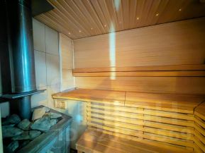 Баня: Площадь 31м Баня построена из газобетона, с фасадной отделкой сайдингом, крыша-металлочерепица. Финская парная с печью, имеется купель, душевая, кухня, уголок для отдыха, стол, диван, биотуалет.