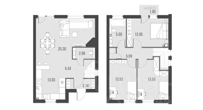 - так же отсутствуют комнатные перегородки, поэтому расположение помещений можете делать так, как удобно Вам;