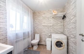 Натяжные потолки; полы-ламинат (в сан. узле- плитка); установлены двухкамерные пластиковые окна REHAU.