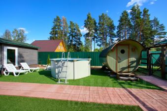Строительство дома осуществлялось по индивидуальному проекту с применением современных технологий. Все строения на участке выполнены в едином архитектурном стиле.