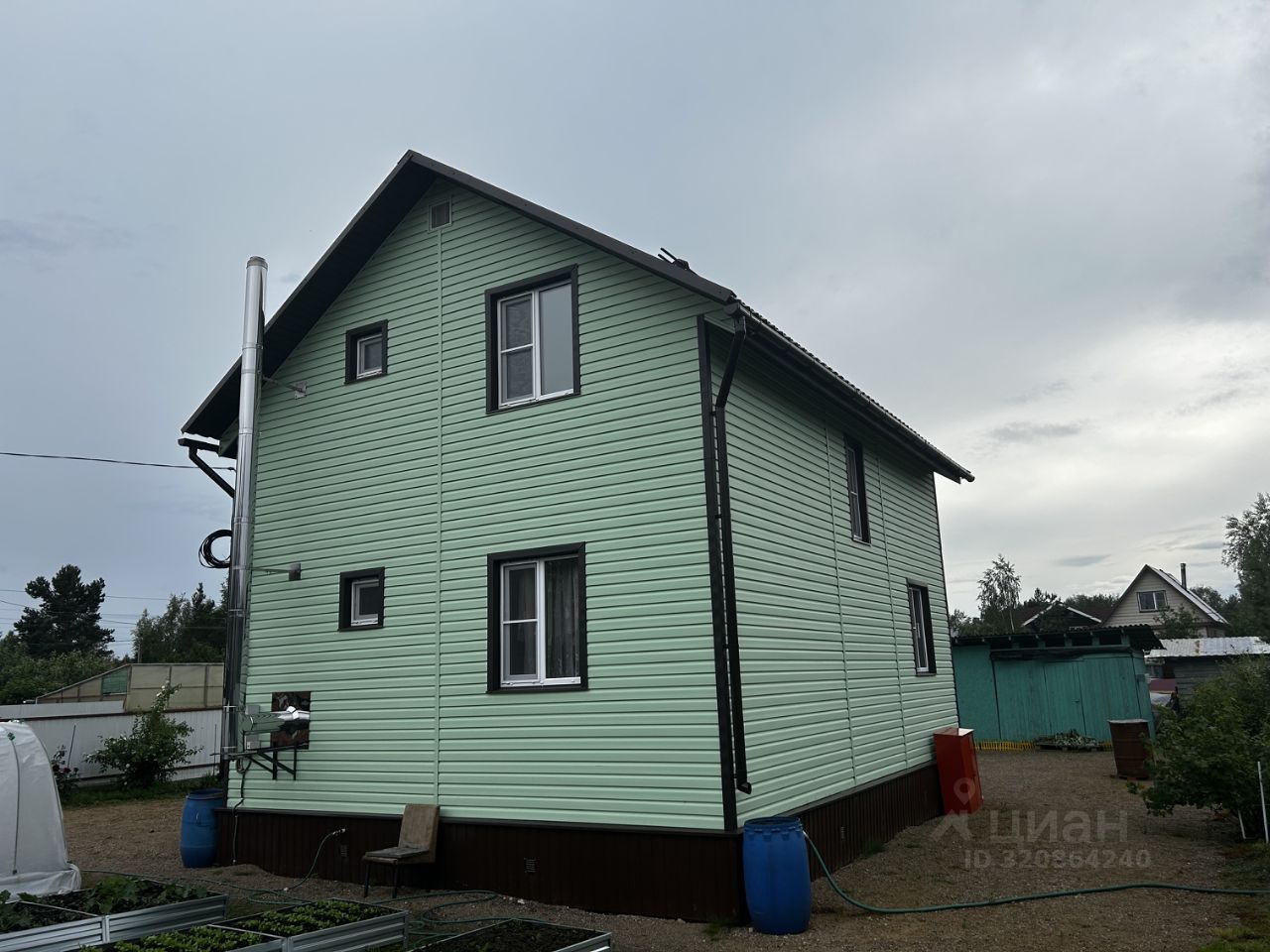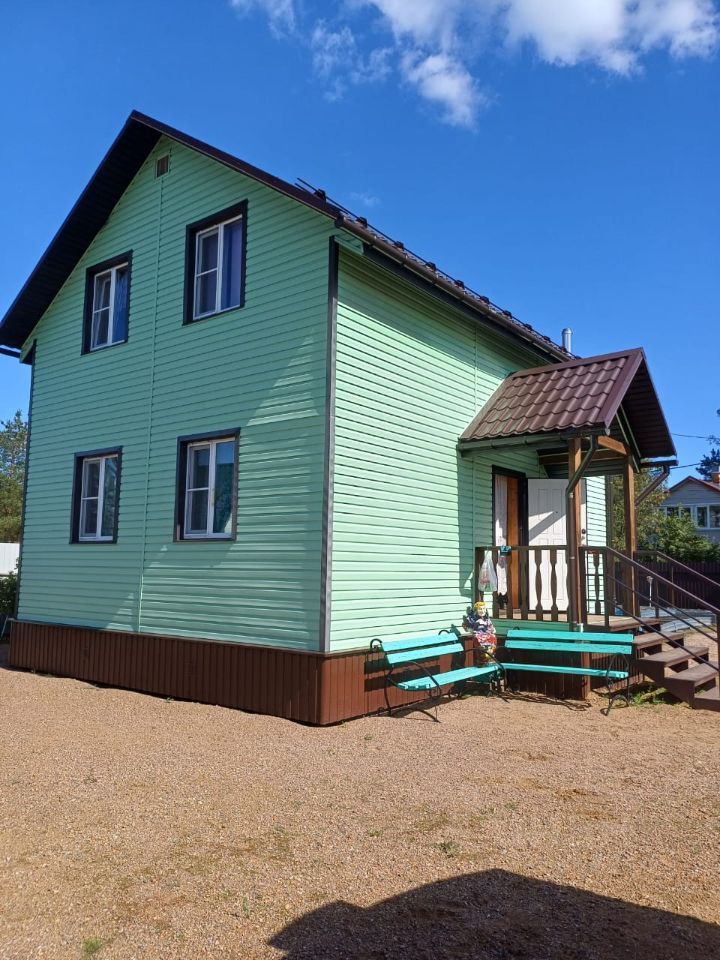 Дом 88.3 кв.м. построен по каркасно-щитовой технологии, утепление стен пола и кровли 150 мм., внутренняя отделка стен имитация бруса, снаружи обшит сайдингом, фундамент винтовые сваи, кровля металлочерепица, окна стеклопакеты.