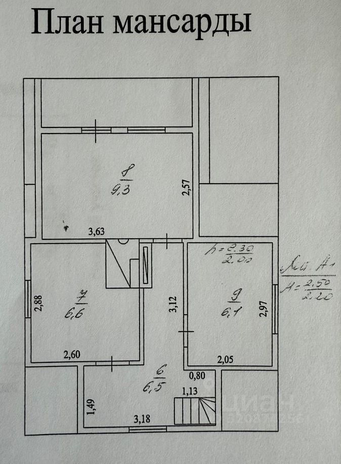 На втором этаже: спальня 9.3 м2 с панорамными дверьми ведущими на большой балкон 6 м2 с высотой до крыши до 4.6 м, спальня 6.6 м2, спальня 6.1 м2, кладовая с входом из первой спальни и коридор 6.5 м. Высота потолка от 2.2 до 2.5 м