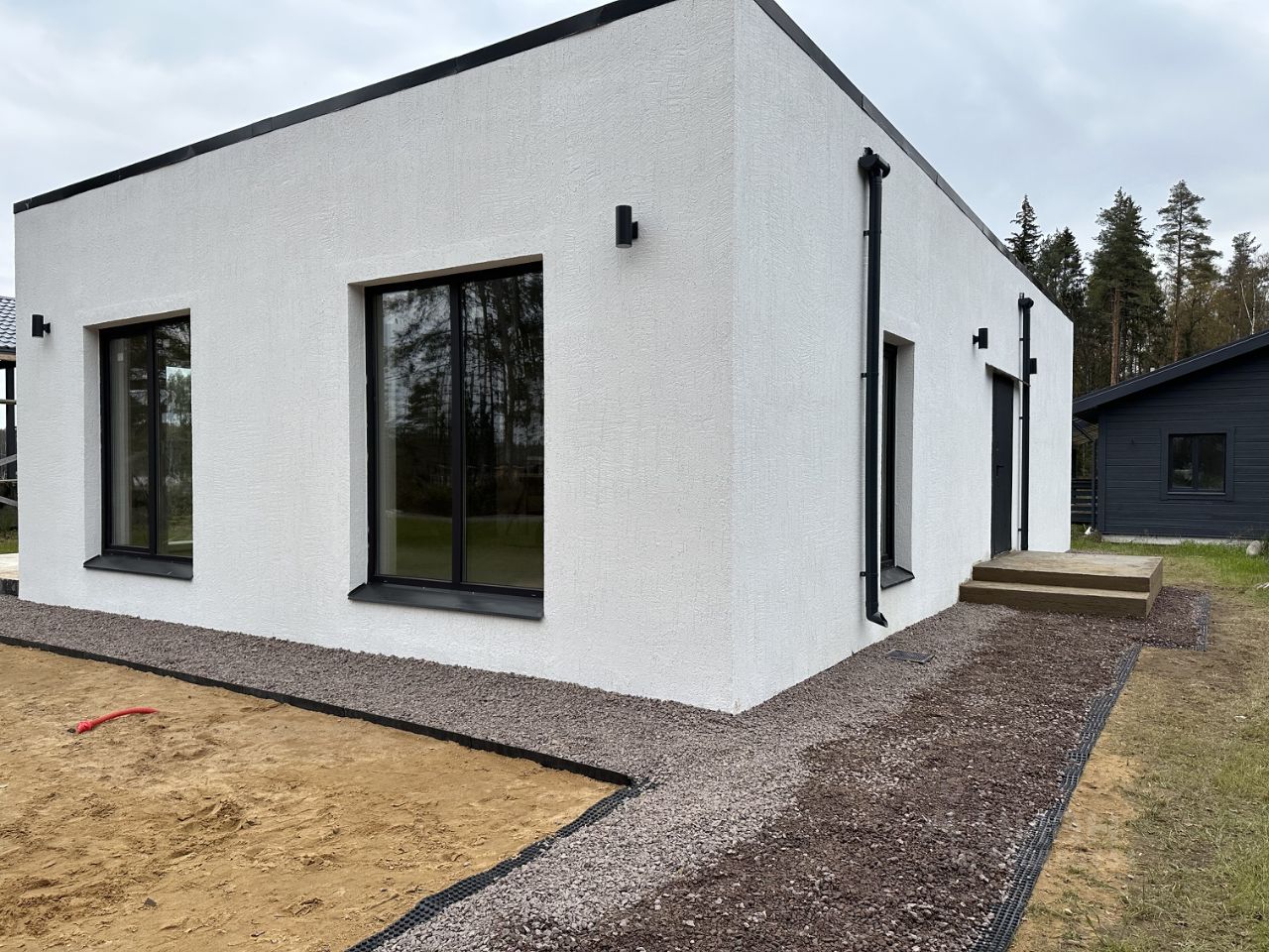 * В доме большая гостиная с панорамными окнами, выходом на террасу и сауной, ванная с технической зоной, санузел, мастер-спальня с собственной ванной, спальня с выходом на террасу, гостевая спальня, прихожая.