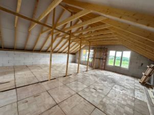 Просторный санузел с встроенной финской сауной. Санузел на стадии завершения по отделке. Перекрытие утеплено.