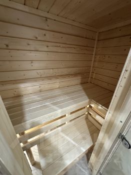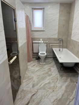 Просторный санузел с встроенной финской сауной. Душевая, ванна, унитаз. Теплые полы. Перекрытие межэтажное утеплено.