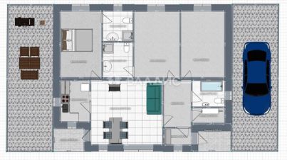 Одна терраса предназначена для двух машин, вторая для отдыха (настольный теннис и др.) и для застольных мероприятий.