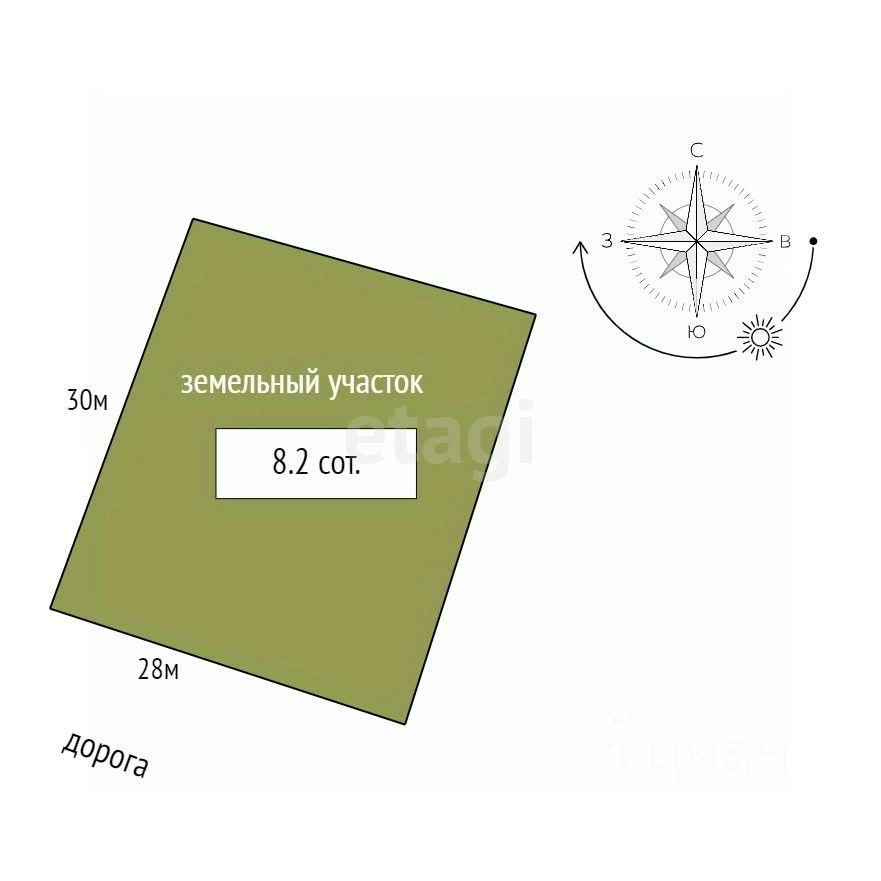 Продаётся ровный и сухой участок площадью 8,2 сотки,