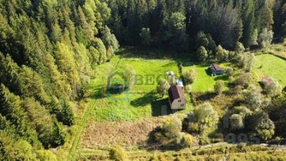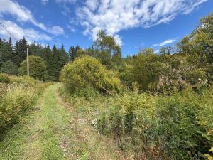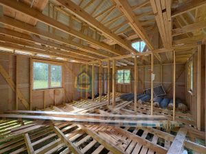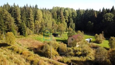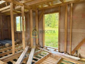 На участке имеется недостроенный двухэтажный , каркасный дом 6 на 8 метров из которого открывается отличный вид лесной массив.